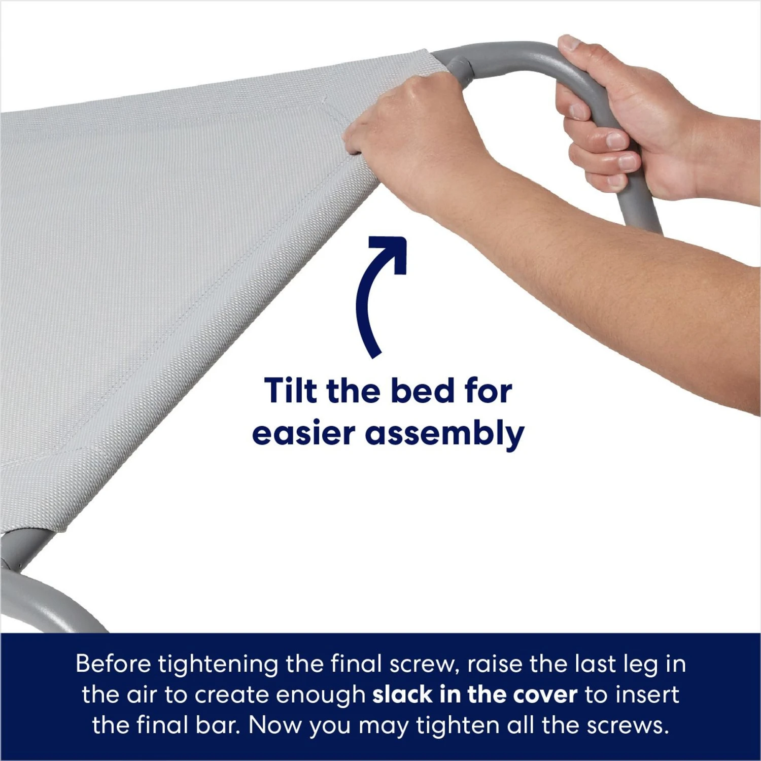Give your dog the best rest they deserve after a long walk, a day of play, or just quality time with the family with this steel-framed elevated dog bed, from Frisco by Chewy! It features a sturdy, powder-coated steel frame and a durable, PVC-coated fabric sleeping surface that’s made to last. The tight, breathable fabric provides an added level of comfort and support that also keeps your dog cool and won’t sag after extended use. The skid-resistant feet provide extra stability during movement, making this ultra-comfortable bed ideal for use on various surfaces, indoors or outside. It’s easy to assemble and just as easy to clean, with surfaces that don’t cling to dirt and grime.